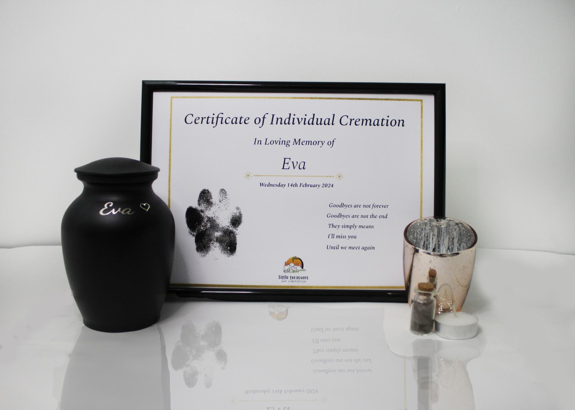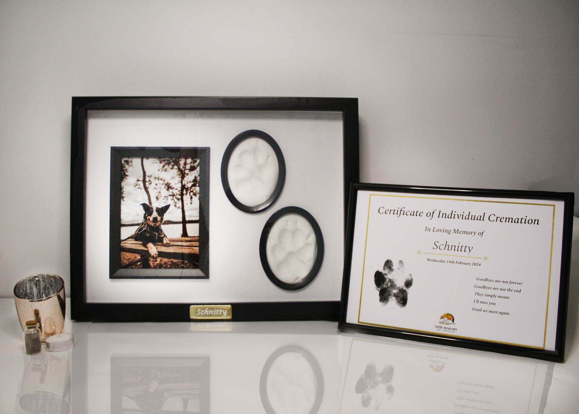 At Little Treasures Pet Cremation, we offer a variety of memorial options and keepsakes that will serve to commemorate your beloved pet. Browse through our gallery below to see our selection of scatter boxes, urns, photo boxes, engraved plaques and more.